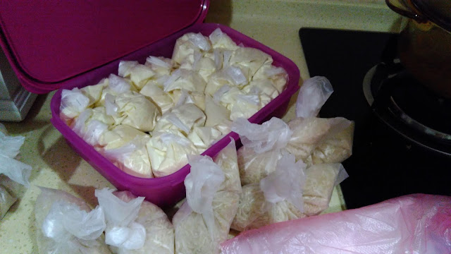 i buat macam ni la..tupperware tak perlu bawak, nanti buh dalam plastik besar je semua..tu susu, couscous & beras..